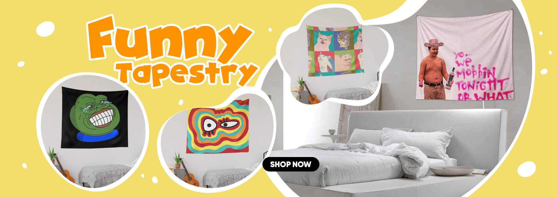 Welcome to our Funny Tapestry Store. Make your living space burst with laughter and creativity with our funny tapestry. Our tapestry is the perfect way to add a touch of humor to your dorm room, bedroom, or any blank wall that needs a little personality, our tapestry is sure to make you smile every time you look at it.